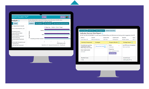 Every teacher has their own classroom education plan that shows which classroom needs they chose to address. Which strategy they chose to address that need and the rate of change as the strategy is implemented. Administrators can see this impact at the classroom, grade, school and district levels to find bright spots for district or school initiatives. By having data on academic and non academic indicators at the school and district level. Which strengths and needs. Updating in real time. Educators can have their finger on the pulse too. Adapt and change as needed throughout the school year.
